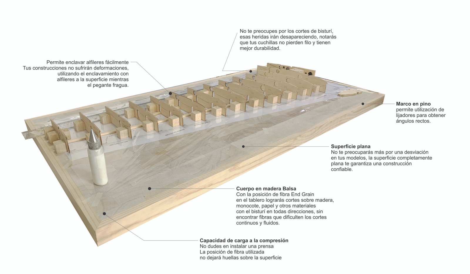 La posición de la madera (End Grain) permite realizar cortes con la hoja en todas direcciones con gran facilidad, sin obstrucciones causadas por la fibra de la madera.
