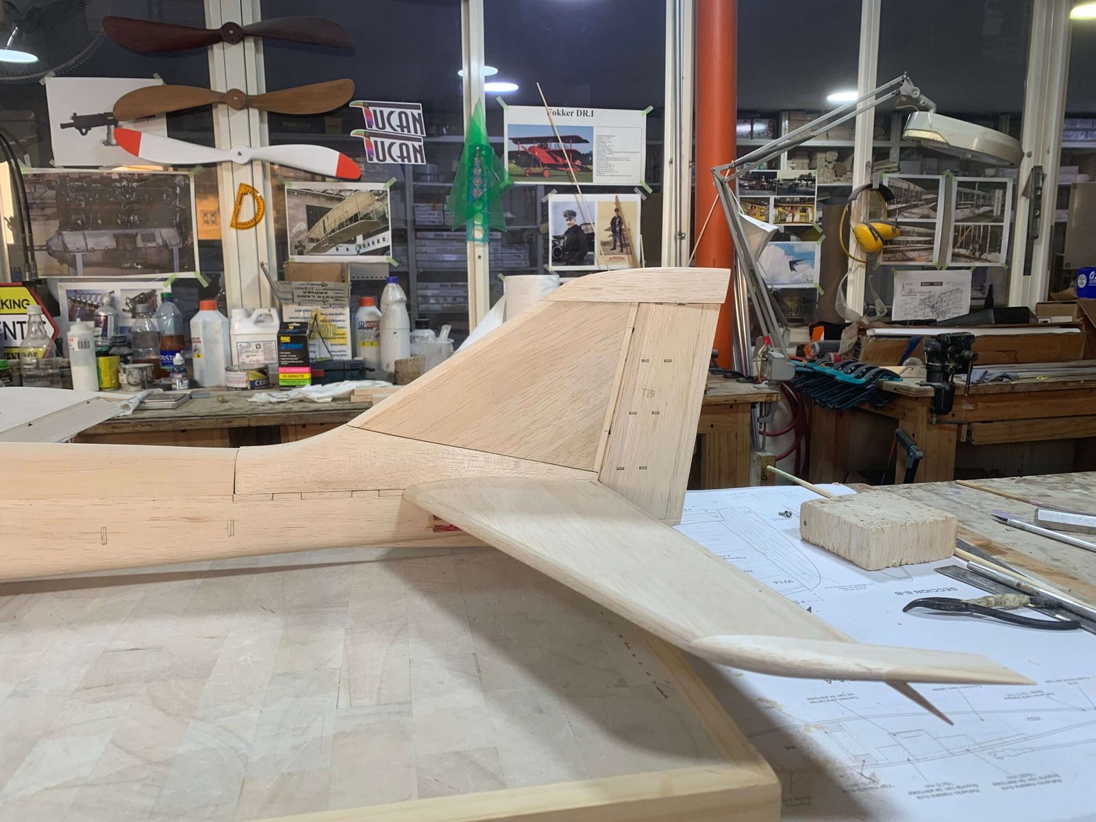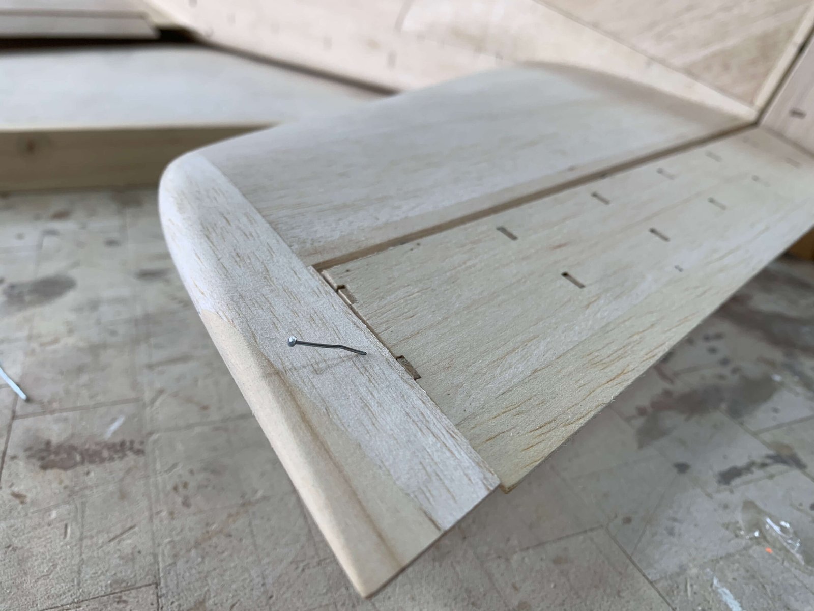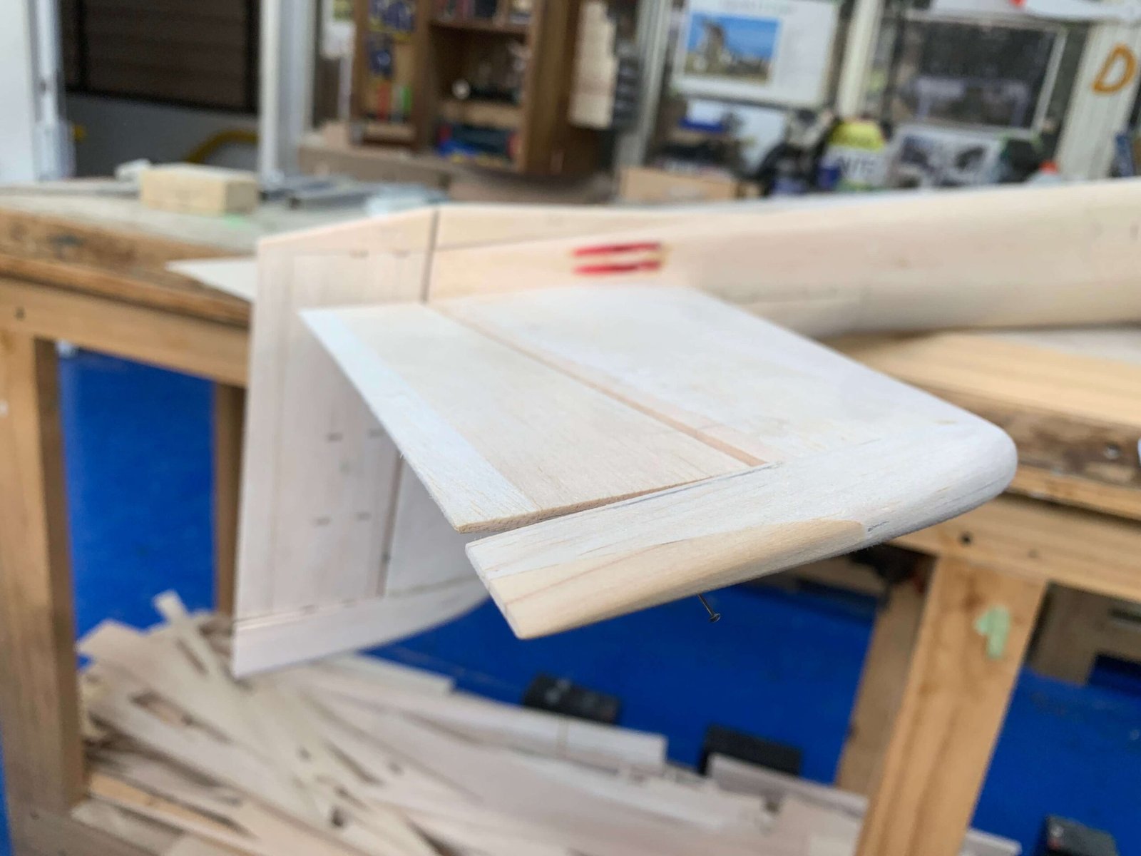 PARA FORMAR LAS PUNTAS DE ALA Y ESTABILIZADOR, MADERA BALSA CON REFUERZOS DE MADERA DE ALTA DENSIDAD EN LAS PUNTAS