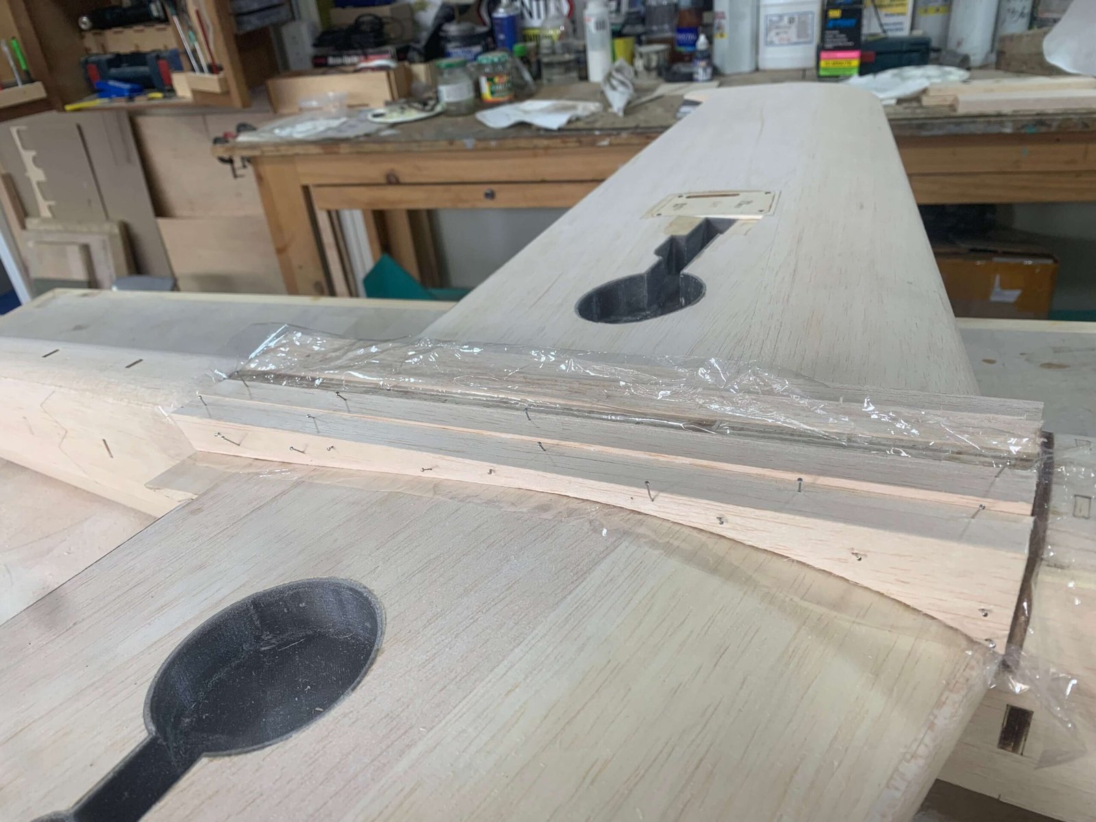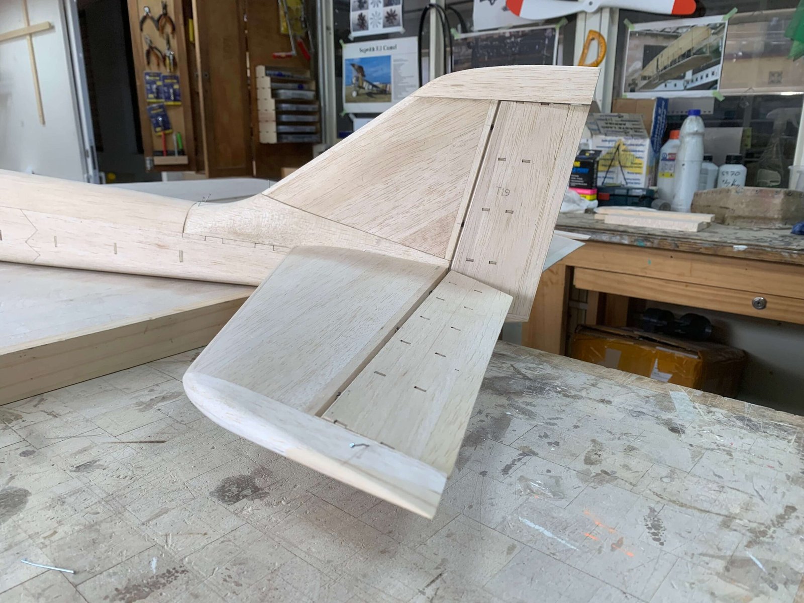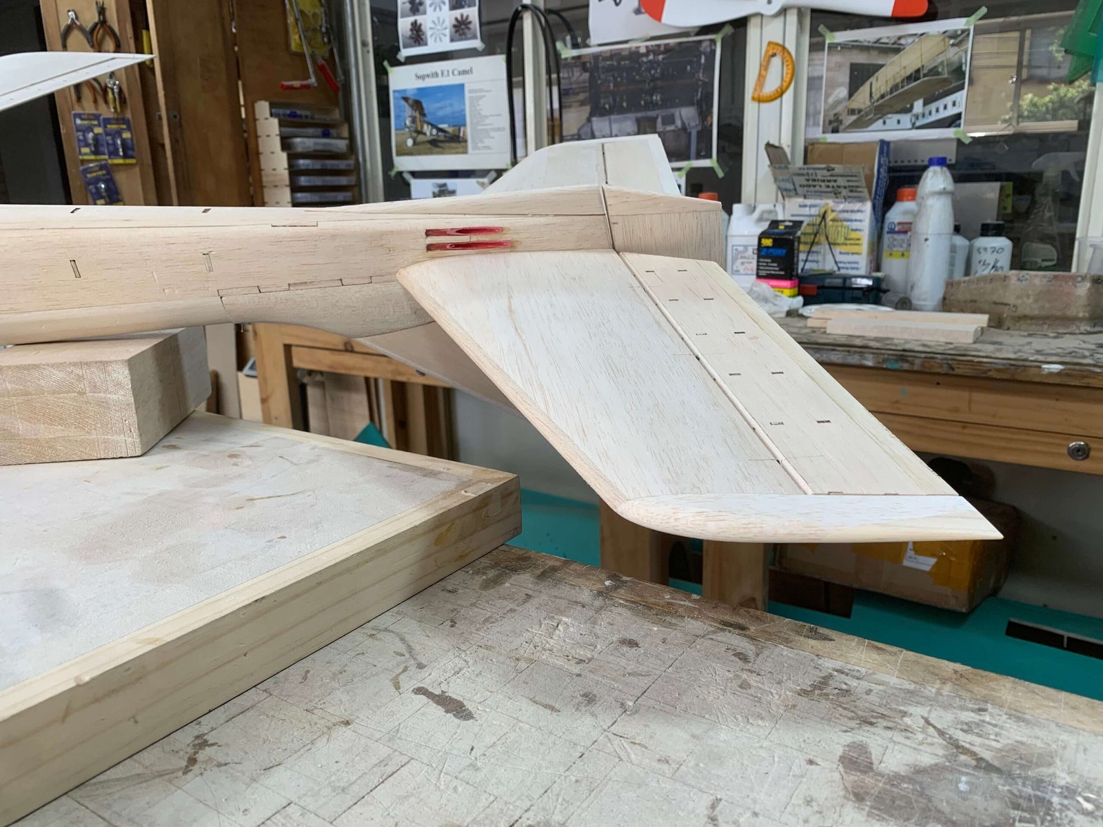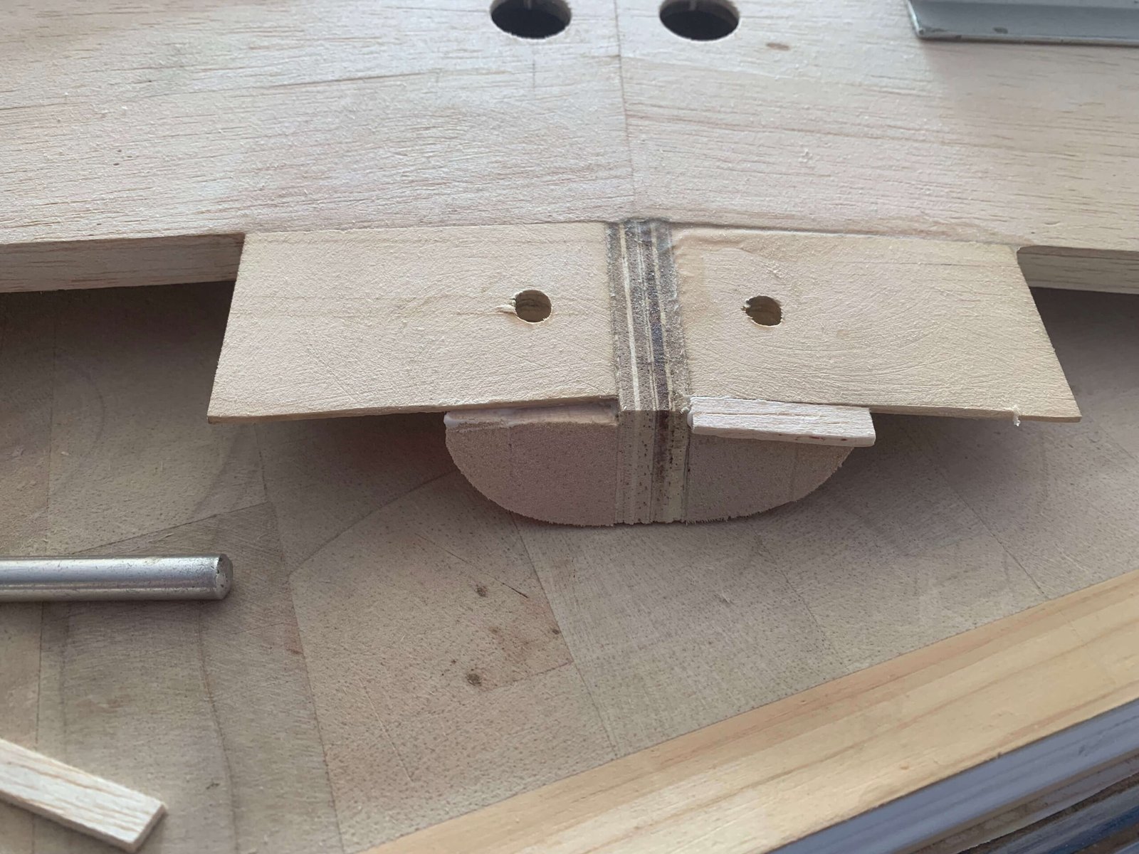 PARA FORMAR LAS PUNTAS DE ALA Y ESTABILIZADOR, MADERA BALSA CON REFUERZOS DE MADERA DE ALTA DENSIDAD EN LAS PUNTAS